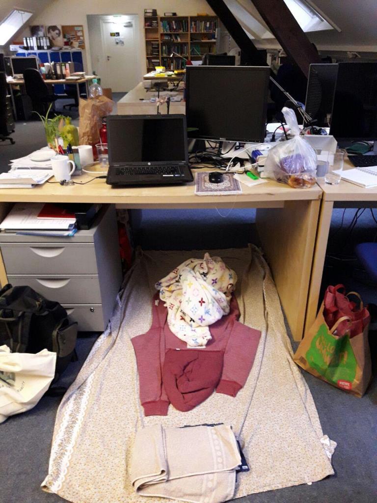 وقتی که ددلاین داشته باشی و زمانت محدود باشه و حجم کارت زیاد و ...اونوقته که سوایشرتت میشه زیراندازت و حوله و باقی لباسها هم بالشتت و البته که یه پتوی کوچیک هم همیشه زیر میزت هست برای شبهای مبادا...اونوقته که زیر میزت میشه پناهگاه شبی بارانی و سرد تا صبح دستتو به میزت بگیری و پاشی و خوشحال باشی که نزدیک کامپیوترتی...